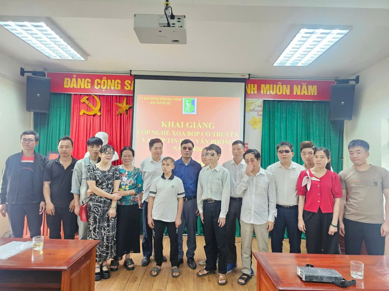 Sáng 25/3/2026, tại Trung tâm Đào tạo Phục hồi chức năng – Giải quyết việc làm cho người mù tỉnh Bắc Ninh tổ chức khai giảng 2 lớp học Tẩm quất cơ bản và Tin học văn phòng cho 20 hội viên người mù trên địa bàn.